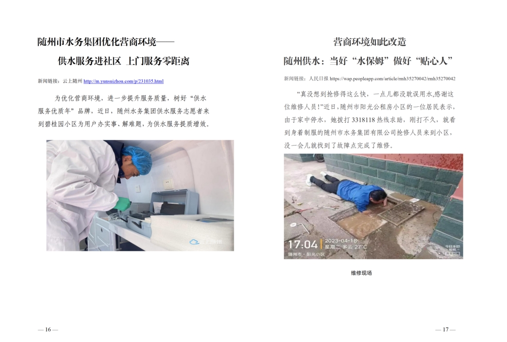 為全面提升供水服務(wù)水平,優(yōu)化供水營(yíng)商環(huán)境,隨州水務(wù)集團(tuán)推出“水保姆”供水服務(wù)新模式,建立“供水服務(wù)網(wǎng)格員”隊(duì)伍,通過(guò)開(kāi)展清表核查、網(wǎng)格劃分、聯(lián)合社區(qū)共同解決用戶問(wèn)題等亮點(diǎn)行動(dòng),讓百姓暖心,讓企業(yè)放心。